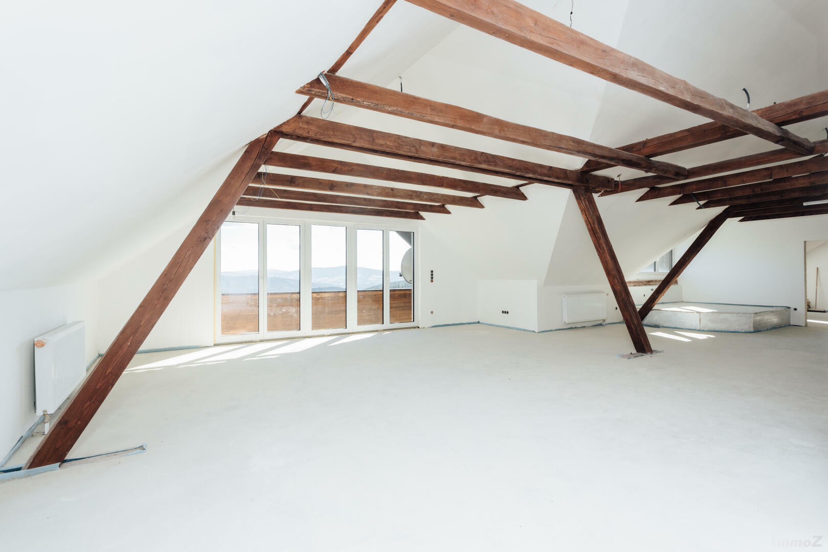 Im Dachgeschoss ist ein weiteres großes Studio geplant mit Panoramafenster, Panorama-Balkon und eigenem Wellnessbereich. Alternativ wäre hier ebenso ein Seminarraum denkbar. Dieses Stockwerk kann noch individuell ausgebaut werden.