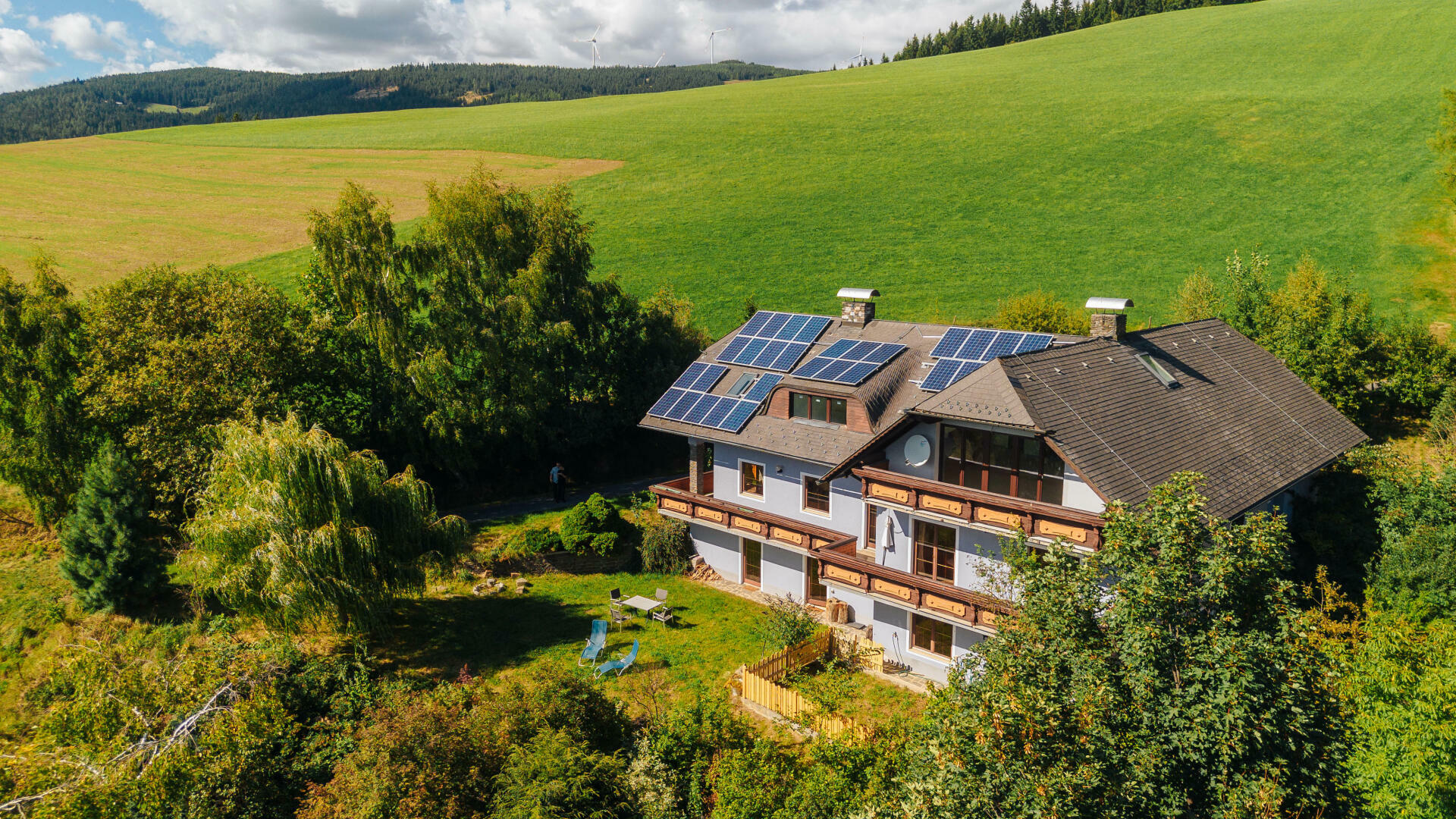 Niedrigere Betriebskosten durch eine moderne Photovoltaik-Anlage, kombinierte Heizung mit Holz und Öl.