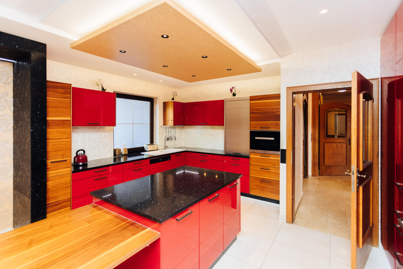 Ebenfalls eine sehr hochwertige EWE-Küche mit Sterngranit-Arbeitsflächen und sehenswerten Versace-Tapeten.